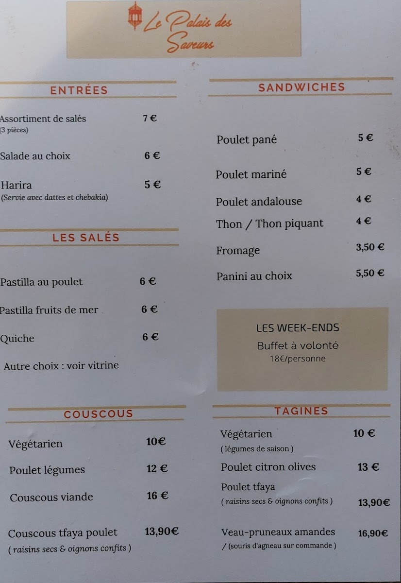 Le Palais des Saveurs Menu